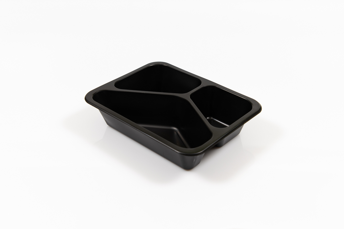 Caserolă termosudare cu trei compartimente, 22.7×17.8×4 cm