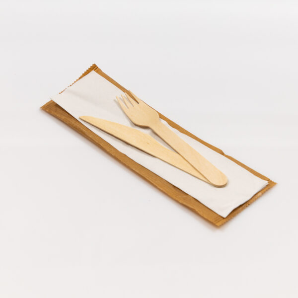 Set tacâm din lemn (cuțit, furculiță, șervețel)